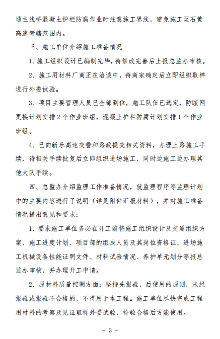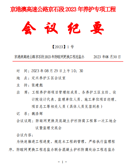 【2023】1號防眩網(wǎng)更換及混凝土護欄防腐工程第一次工地會議暨監(jiān)理交底會會議紀要