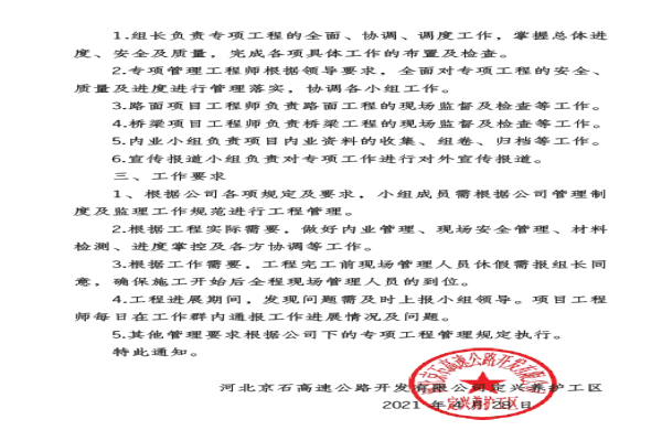 河北京石高速公路開(kāi)發(fā)有限公司定興養(yǎng)護(hù)工區(qū)關(guān)于成立K103 586_K103 784增設(shè)聲屏障工程管理小組的通知