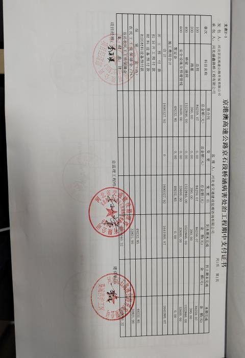 京港澳高速公路京石段橋涵病害維修處治工程YH-3標(biāo)段支付證書(shū)