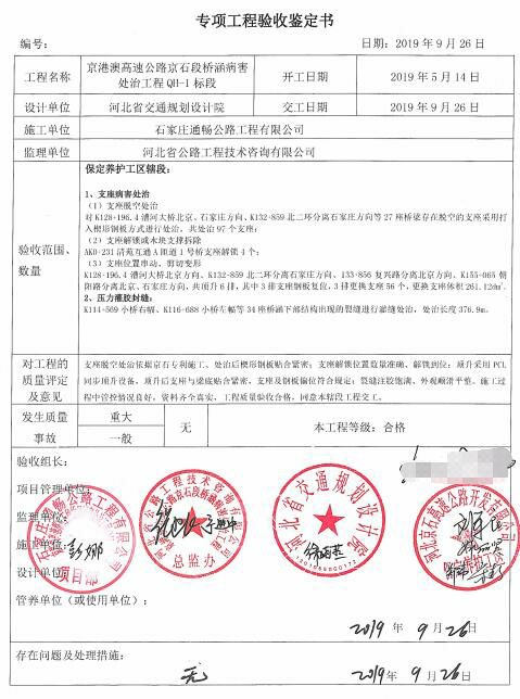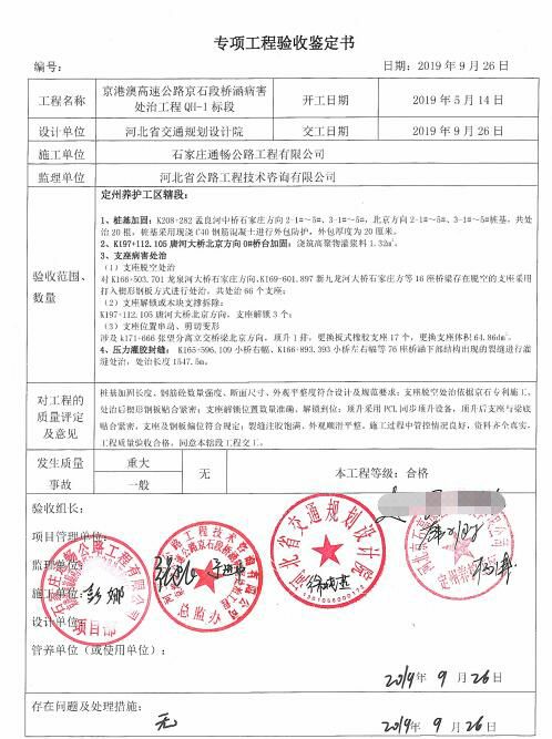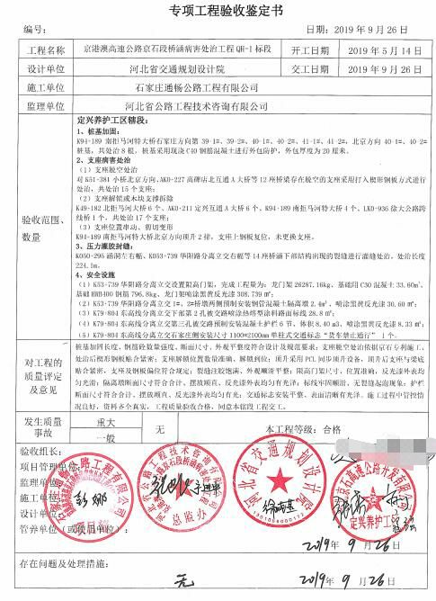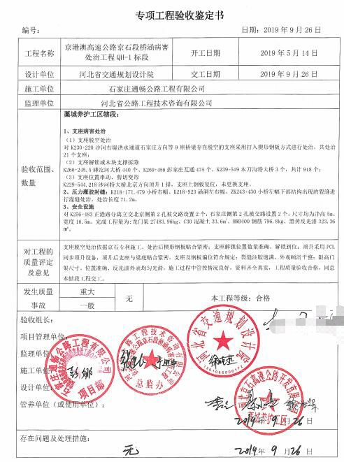 京港澳高速公路京石段橋涵病害處治工程QH-1標(biāo)段工程專項鑒定書