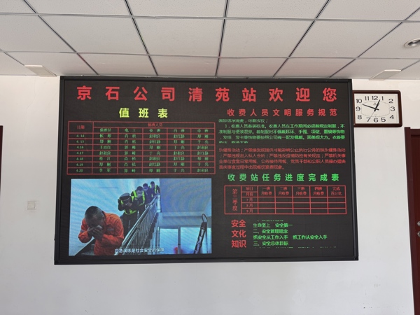 在收費站辦公區(qū)、宿舍等顯著位置張貼宣傳海報,海報內容涵蓋總體國家安全觀的內涵、危害國家安全的行為等,以直觀的畫面和簡潔的文字吸引過往人員的關注。利用單位大屏幕滾動播放國家安全宣傳視頻,向職工和來訪人員普及國家安全知識,加深了大家對國家安全的理解。