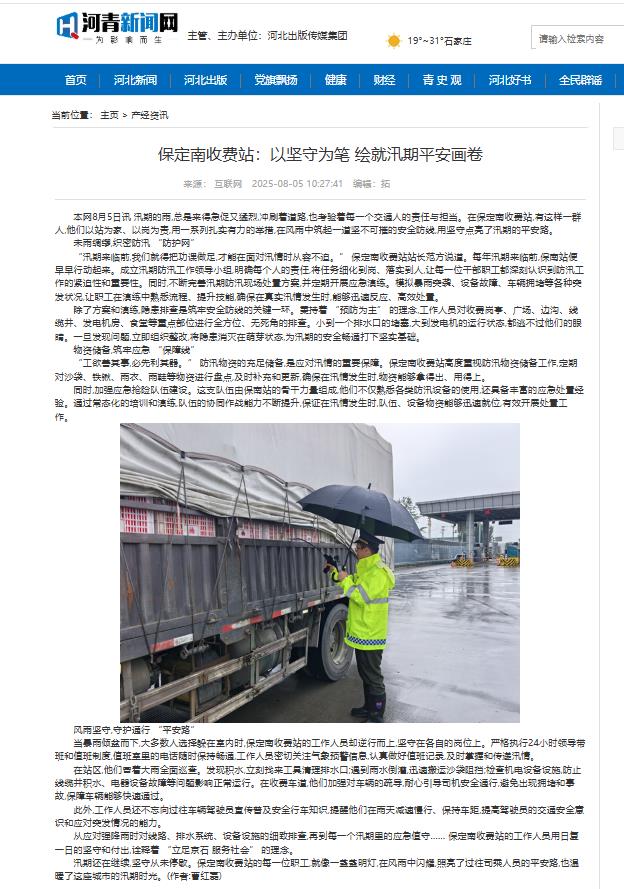 【河青新聞網(wǎng)】保定南收費(fèi)站:以堅(jiān)守為筆 繪就汛期平安畫卷