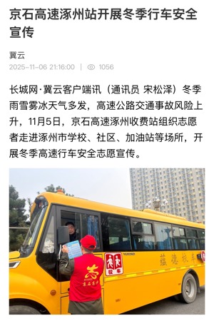 【長(zhǎng)城網(wǎng)冀云】京石高速涿州站開(kāi)展冬季行車(chē)安全宣傳