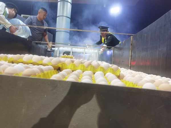 10月2日21時許,一輛車牌號為津GXXXX的貨車駛入高碑店收費站12車道。正在崗亭內(nèi)執(zhí)勤的收費人員敏銳發(fā)現(xiàn),該車車廂頂部裝載鮮雞蛋的紙質(zhì)蛋槽內(nèi)突然冒出濃煙,明火隨即竄出。收費員立即通過對講機向值班站長劉偉緊急報告,并迅速示意司機將車輛停靠至安全區(qū)域。