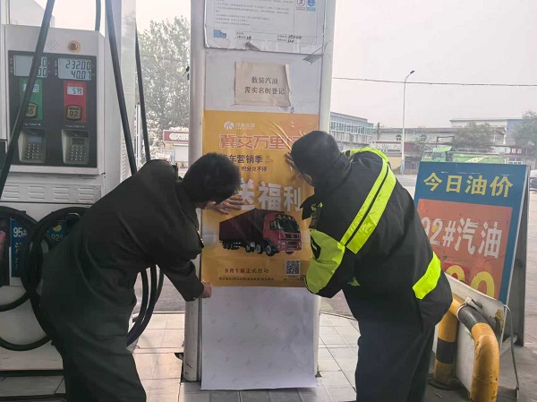 隨后,引流小組在海油加油站現(xiàn)場設(shè)立宣傳點,向過往加油的貨車司機們積極宣傳“冀交萬里行”貨車營銷活動。工作人員通過發(fā)放宣傳彩頁、現(xiàn)場講解、手把手指導(dǎo)注冊等方式,耐心向司機師傅們介紹小程序的注冊流程及使用方法,讓大家直觀感受到各項福利政策。同時,引流小組還重點推廣了“空車配載”服務(wù),詳細(xì)解釋了該服務(wù)如何幫助司機快速匹配貨源、減少空駛里程、增加運輸收入,實現(xiàn)“貨找車、車找貨”的高效匹配,真正做到“一站直達”的高效物流體驗。