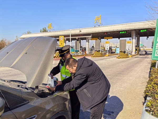 11月22日中午時分,冬日暖陽下的涿州收費站外廣場,一輛小客車卻靜靜地停在原地,引擎蓋高高掀起,司機正對著發(fā)動機艙一籌莫展。這一異常情況,很快被正在值守的收費員發(fā)現(xiàn),并立即將情況報告給了當(dāng)班值班站長王松青。