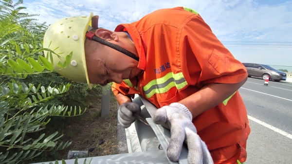 為了完成勞動競賽各項目的技術狀況提升工作,定州工區(qū)采用邊調查邊施工的方案,加快技術狀況提升工作的進度。四個項目中工程量最大的是護欄設施技術狀況提升工作,需要對雙幅將近140公里的鋼護欄的螺栓、防阻塊、墊片等各種配件完好程度進行檢查,不放過每一條螺栓、每一個墊片。工區(qū)集中優(yōu)勢兵力先啃這塊硬骨頭,利用秋季多晴好天氣的有利條件,將施工人員分成幾組,延長施工時間分段進行施工,將缺少的護欄配件逐個補齊,將每一個螺栓挨個擰緊。對防眩設施的提升工作則是利用中央帶綠化修剪的施工現(xiàn)場合并施工,將中央帶綠化間零星分布的銹蝕的金屬防眩網進行更換。