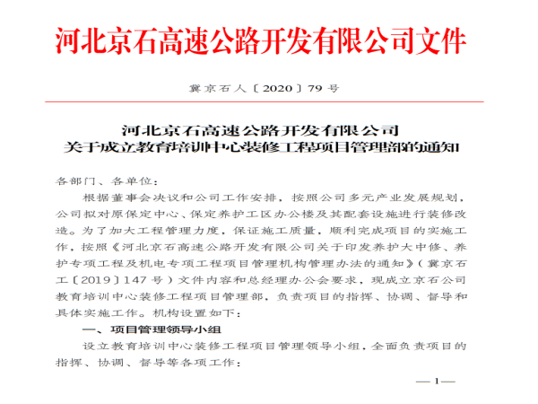 關于成立教育培訓中心裝修工程項目管理部的通知