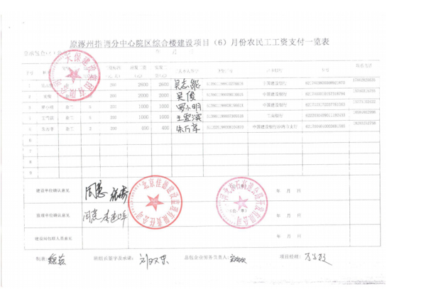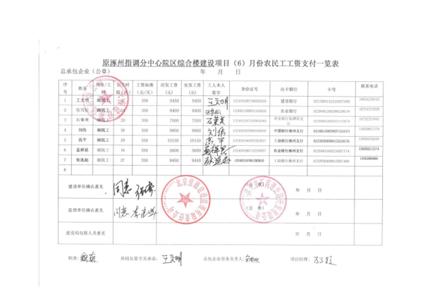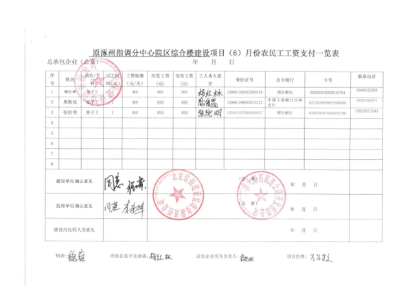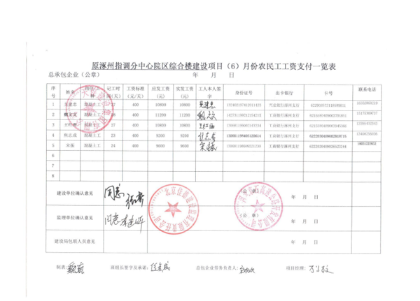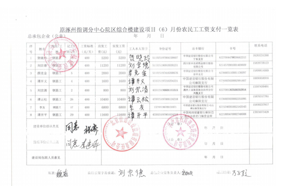 原涿州指調(diào)分中心綜合樓建設(shè)項目6月份農(nóng)民工工資發(fā)放公示