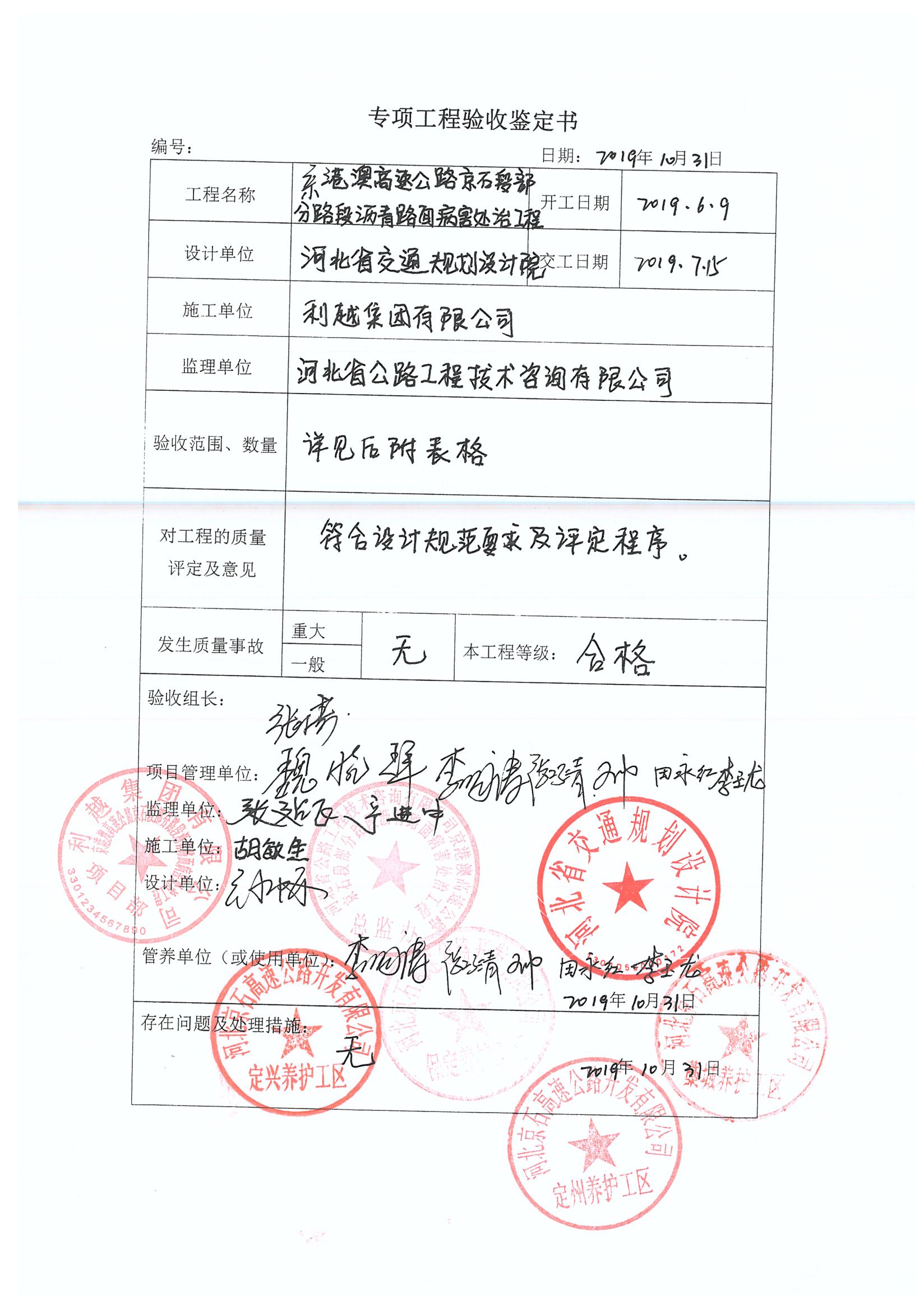 京港澳高速公路京石段部分瀝青路面病害處治工程專項鑒定書