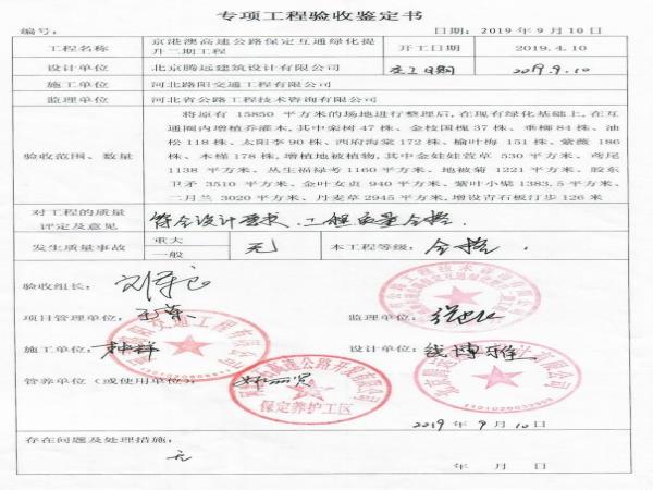 保定互通綠化提升二期工程專項鑒定書