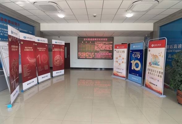 為擴大宣傳覆蓋面,營造濃厚氛圍,高碑店站在收費廣場設置咨詢臺,站內(nèi)擺放展板、懸掛橫幅,向過往司乘發(fā)放宣傳資料50余份,解答咨詢10余次;利用站內(nèi)電子顯示屏滾動播放宣傳標語與視頻;借助微信工作群、公眾號等新媒體平臺發(fā)布國家安全知識圖文、視頻,鼓勵職工積極轉(zhuǎn)發(fā),引導更多人關注國家安全。