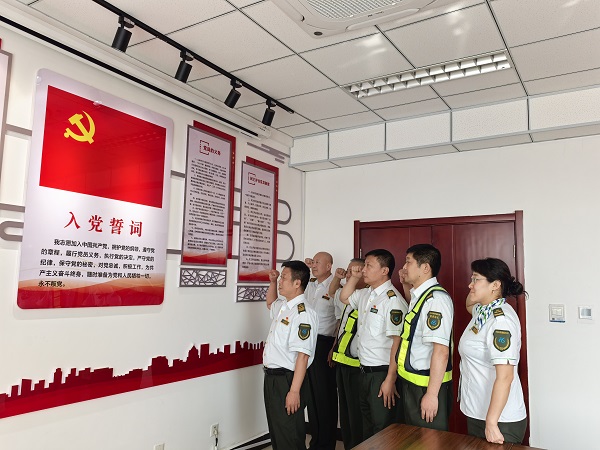 觀影結(jié)束后,在黨支部書(shū)記孫克瞳的帶領(lǐng)下,全體黨員整齊列隊(duì),莊嚴(yán)地舉起右拳,重溫入黨誓詞?!拔抑驹讣尤胫袊?guó)共產(chǎn)黨,擁護(hù)黨的綱領(lǐng),遵守黨的章程……”鏗鏘有力的誓言在現(xiàn)場(chǎng)回蕩,每一位黨員都用真摯的聲音表達(dá)了對(duì)黨忠誠(chéng)的決心,堅(jiān)定了為黨的事業(yè)奮斗終身的信念。