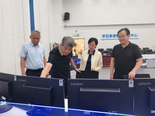李昕、王曉娜通過外場視頻查看了全線車輛通行情況,聽取了宋罡對當前京石高速通行狀況及保通保暢措施的匯報,重點了解了易緩行路段的車流量數(shù)據(jù),并對互通路段所設(shè)計的導流線進行了評估探討。