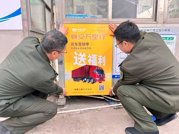 活動現(xiàn)場,小組工作人員首先在物流園顯眼位置張貼宣傳海報(bào),營造濃厚推廣氛圍,快速吸引過往貨車司機(jī)關(guān)注。隨后,針對司機(jī)群體出行需求,工作人員主動上前,向過往司機(jī)詳細(xì)介紹小程序的各項(xiàng)功能,清晰解答司機(jī)關(guān)于注冊流程、使用場景的疑問。同時(shí),工作人員引導(dǎo)司機(jī)現(xiàn)場掃碼注冊,手把手協(xié)助完成操作,確保司機(jī)能快速掌握使用方法。