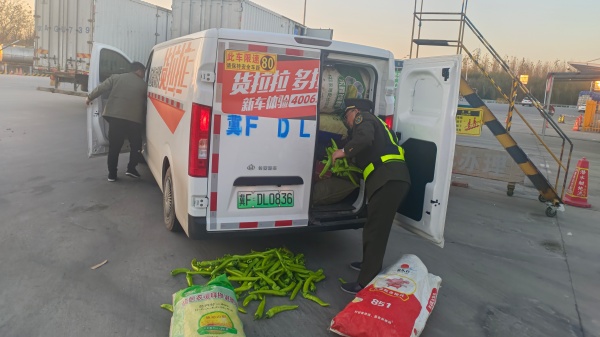 12月3日16時左右,一輛裝載蔬菜的綠通貨車在保定南站下路,在檢驗(yàn)過程中,當(dāng)查驗(yàn)拍照時,車廂后門打開的剎那,上面裝的尖椒灑落滿地。司機(jī)一下慌了神,露出了焦急的神情。“貨主正等著發(fā)貨。這可怎么辦啊,肯定會扣我的運(yùn)費(fèi)〞正在驗(yàn)貨的馬立杰趕緊安慰說:“師傅別急啊,我們馬上幫您裝上車?!?/span>