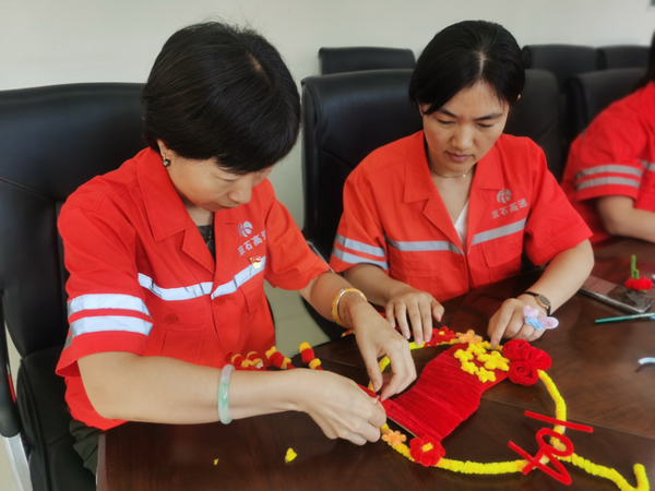 隨后,大家紛紛動(dòng)手創(chuàng)作。有的職工專注地將紅色扭扭棒彎成鐮刀錘頭的形狀,細(xì)致地調(diào)整角度,力求還原黨徽的莊嚴(yán);有的以“五星紅旗”為主題,用紅色打底、黃色的五角星;并拼出“104”等字樣,表達(dá)對(duì)黨的祝福。創(chuàng)作過程中,大家不時(shí)交流黨史心得,分享對(duì)紅色精神的理解,原本安靜的工坊里充滿了歡聲笑語與思想碰撞。